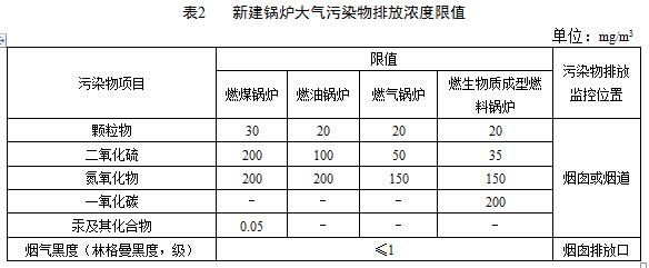 三、新建鍋爐自2019年4月1日(本標(biāo)準(zhǔn)實(shí)施之日)起執(zhí)行表2規(guī)定的大氣污染物排放限值。